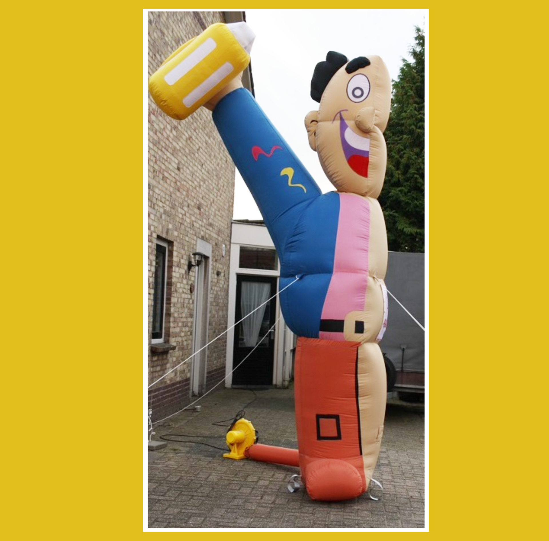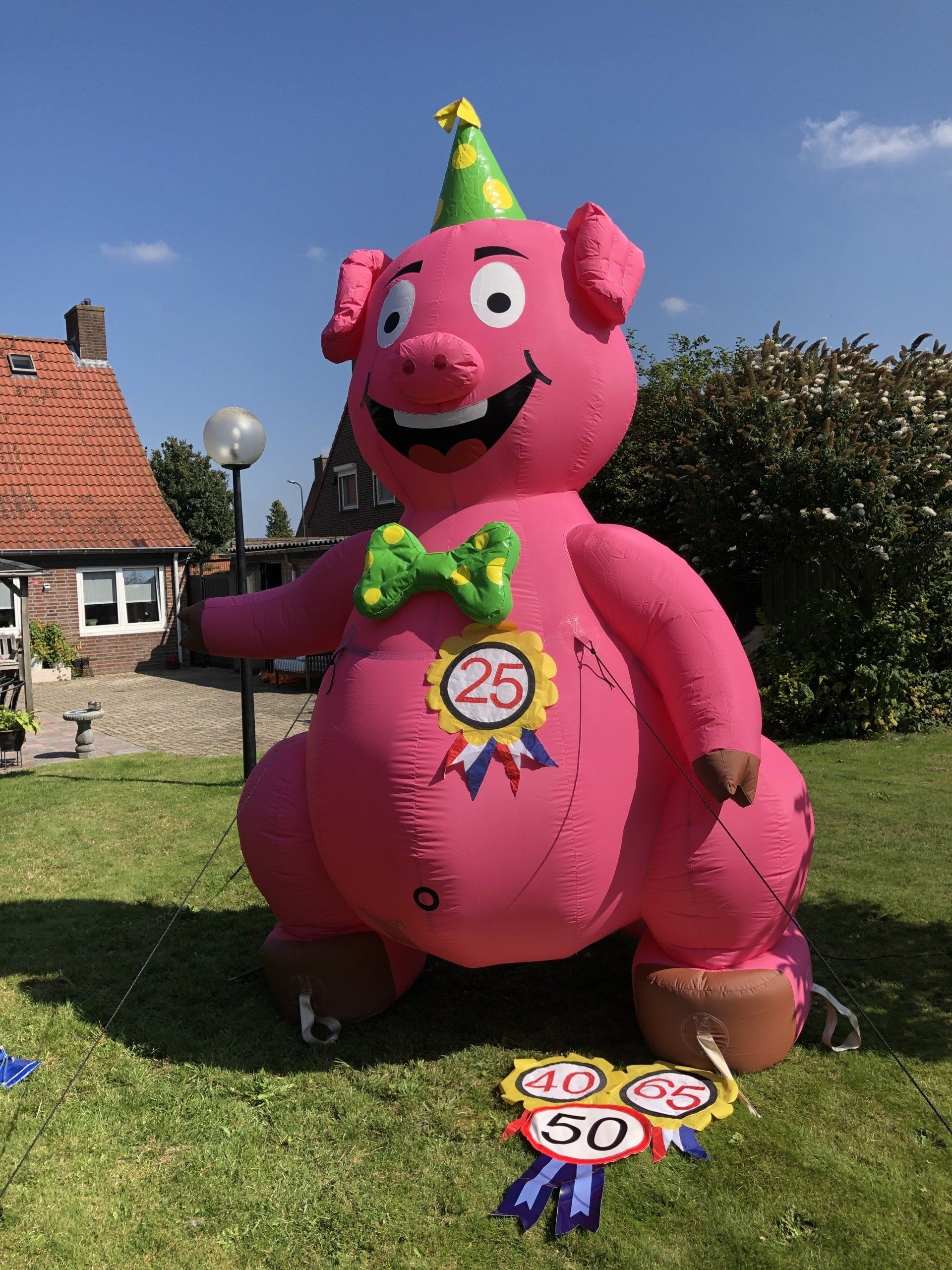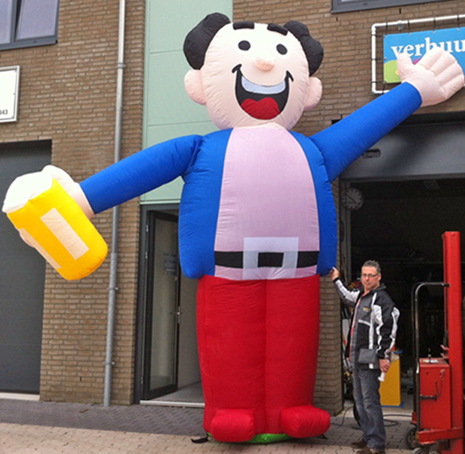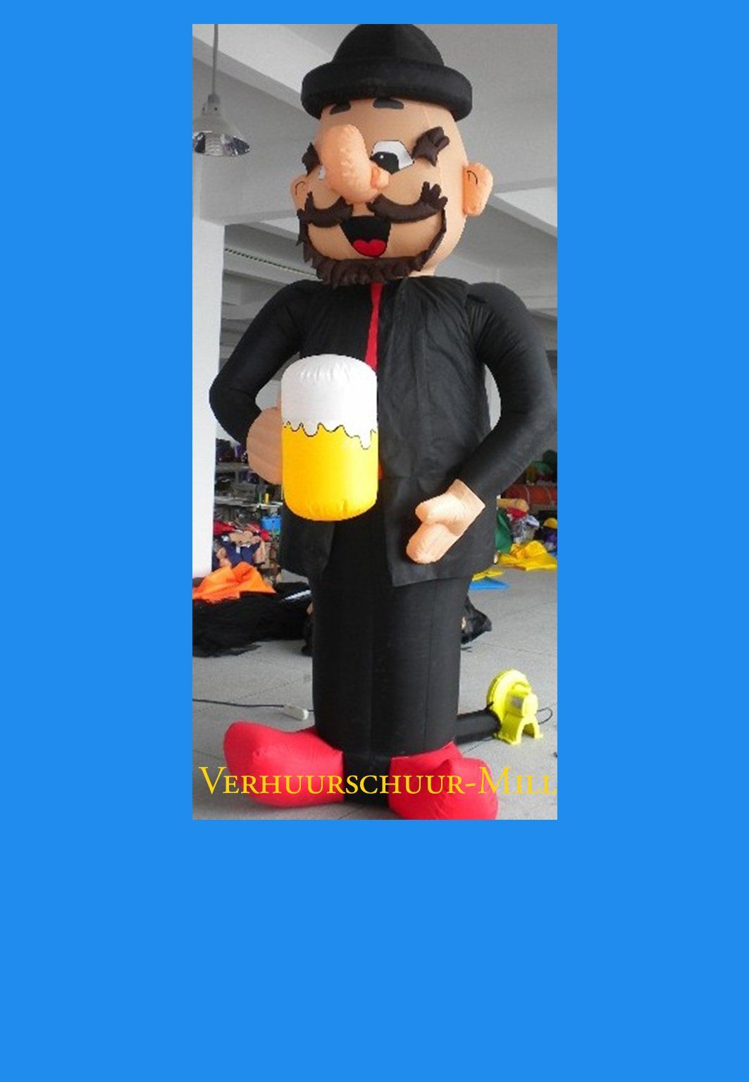 Opblaasbare feestfiguren zijn voorzien van een blower die aan moet blijven staan. Reserveer via het formulier, mail naar info@deverhuurschuur.nl of bel tel. 0485-325634;